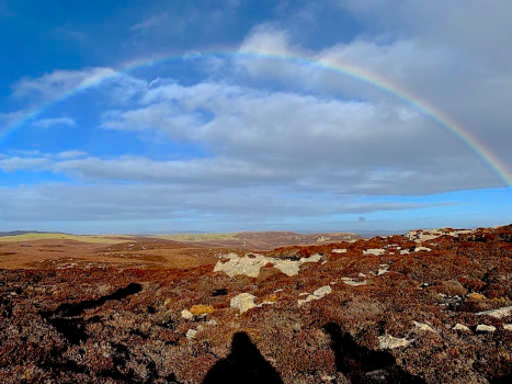 SSW to the Ward of Browland where a well-preserved heel cairn (HU267515) shares
